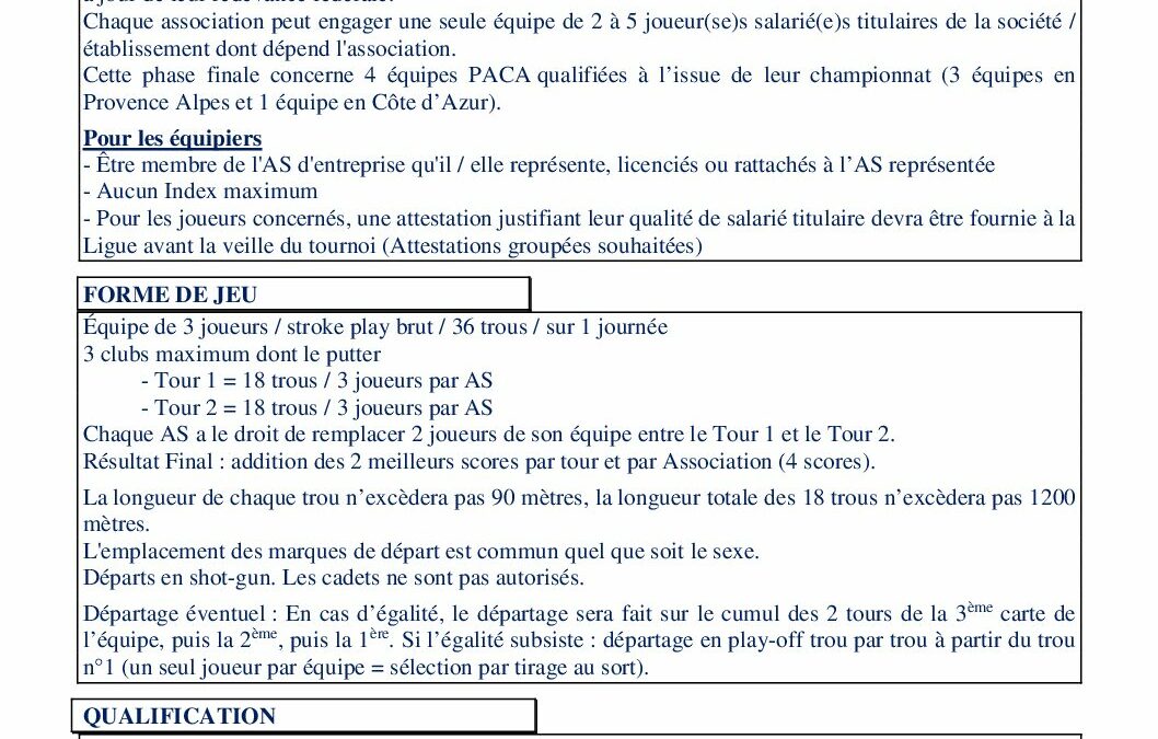 de la Ligue Régionale de Golf Sud Provence-Alpes-Côte-d'Azur