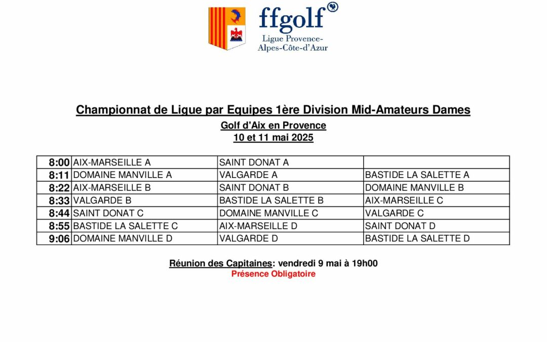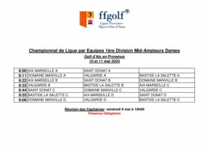 Départs 1ère Div. MA Dames 2025 (Aix en Pce)