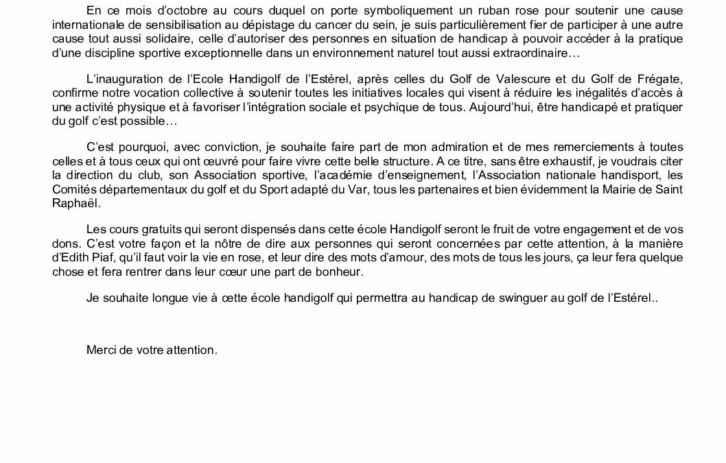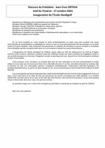 Discours Président – Inauguration Ecole handigolf Estérel (17.10.24)