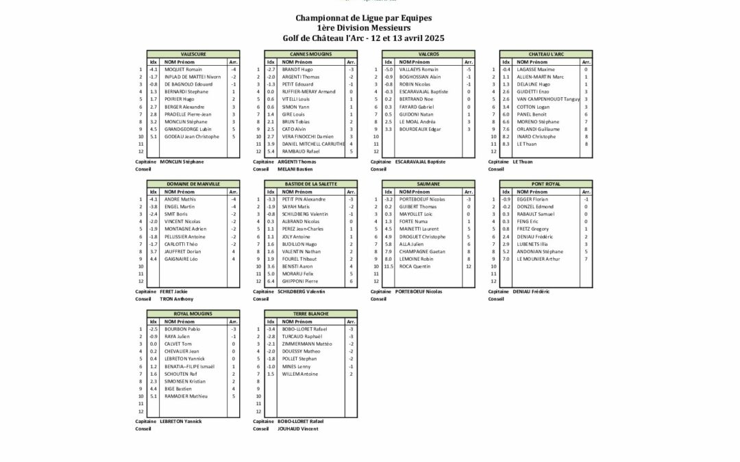 Equipes 1ère Div. Messieurs 2025 (Chateau l’Arc)