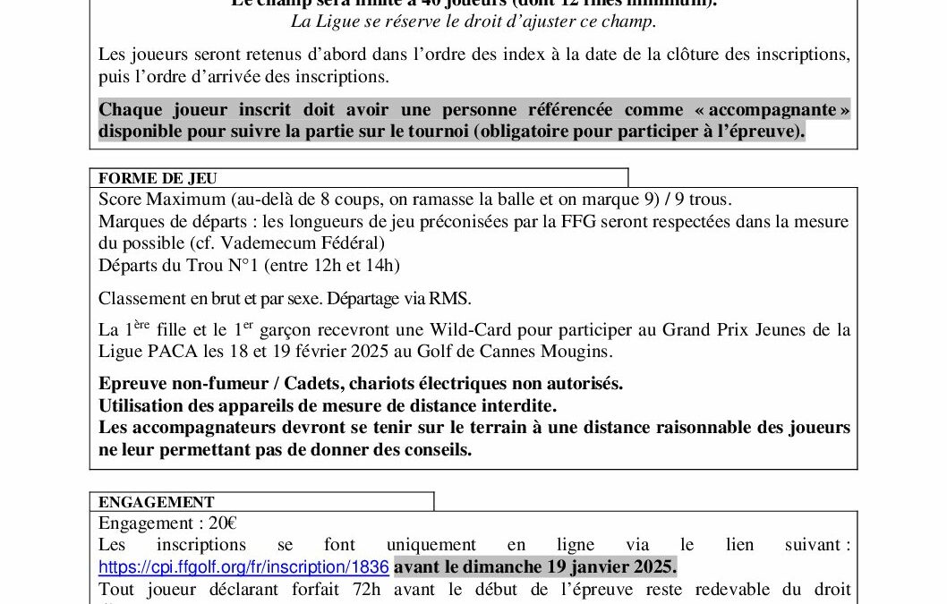 de la Ligue Régionale de Golf Sud Provence-Alpes-Côte-d'Azur