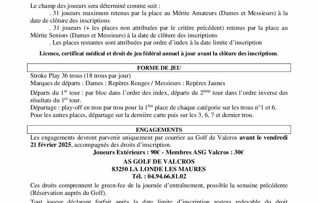 Règlement GP Seniors Valcros 2025